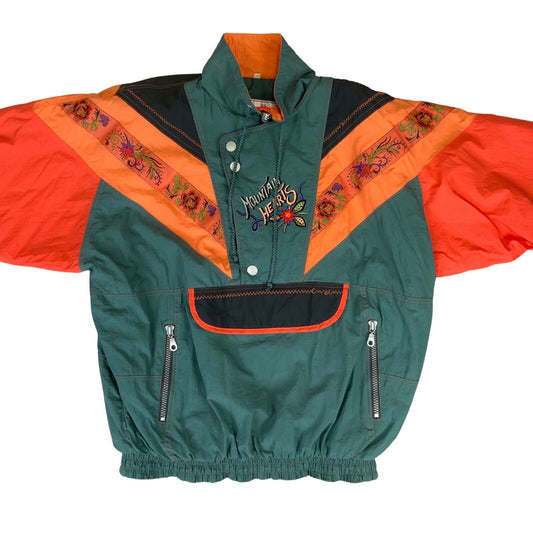 Vintage 80s 90s Orange Green Embroidered Floral Shell Sports Ski Jacket 2XL