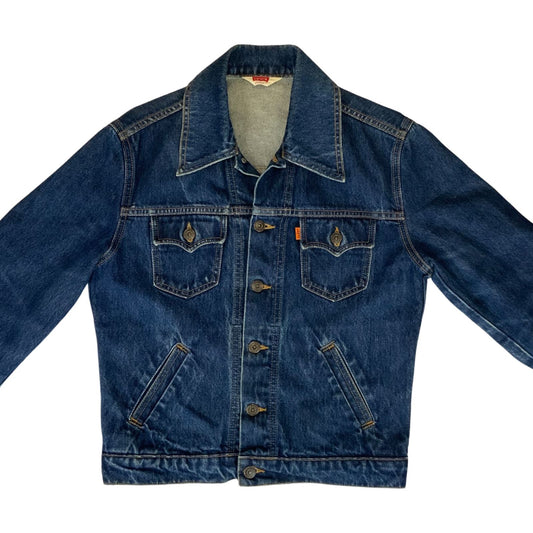 VTG 90s 70s LADIES REPLICA ORANGE TAB DENIM JACKET ROCKABILLY MOD 40” (36) S