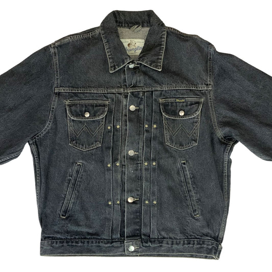 VTG MENS 80s WRANGLER BLUEBELL BLK TYPE 1 PLEAT DENIM JACKET BLOUSON 48” (44) L
