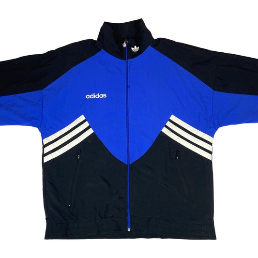 Vintage 90s 00s Blue Black Adidas Embroidered Three Stripe Windbreaker XL