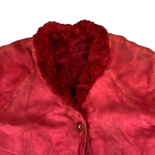 Vintage 80s 90s Red Faux Fur Lined Suede Long Shearling Coat M