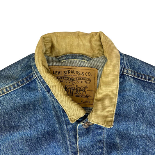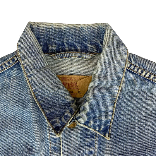 VTG USA 90s STONEWASH BLUE LEVIS 75557 RED TAB TYPE3 TRUCKER DENIM JACKET 48” XL