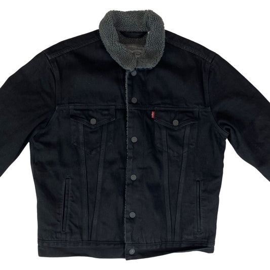 BLACK SHERPA LINED LEVIS RED TAB TYPE 3 TRUCKER DENIM JACKET 41” M