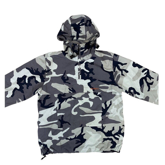 Carhartt Black & Grey Camouflage Print Pull-Over Hooded Windbreaker Medium