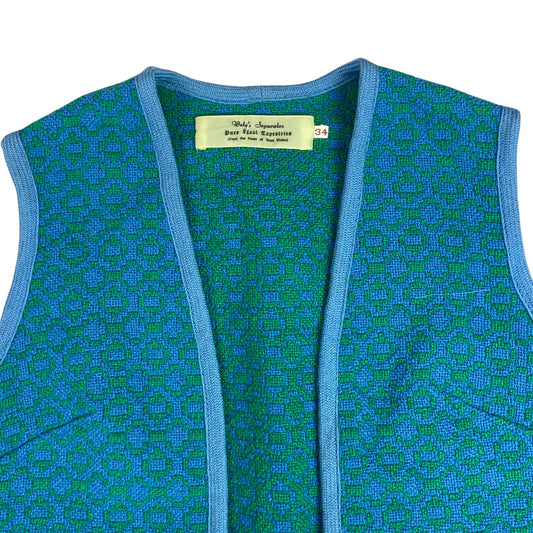 Vintage 60s 70s Blue Welsh Wool Waistcoat Geometric Patterned Tapestries M 12 14