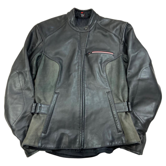 VTG ZIP UP LEATHER BOMBER BIKER JACKET COAT ROCKABILLY HOT ROD ROCKER 40” M
