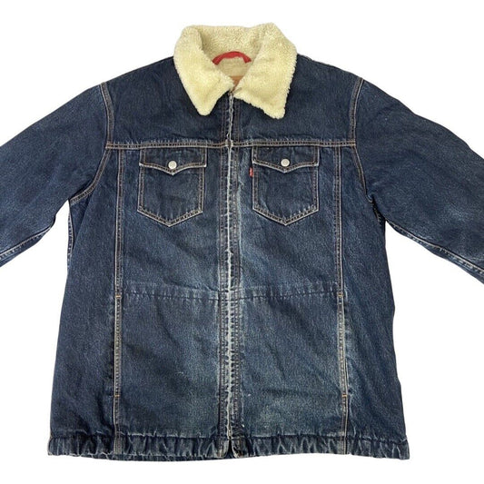 VTG LEVIS SHERPA LINED DENIM TRUCKER CHORE JACKET COAT ROCKABILLY 44”