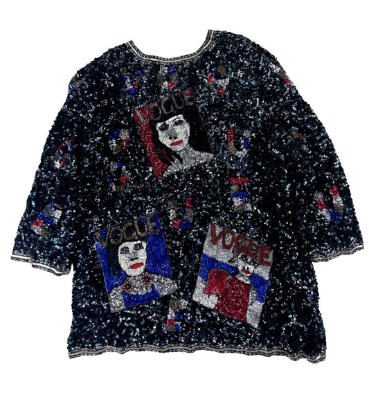 Vintage Black Iridescent Sequin Bead Blouse Top S 10 12