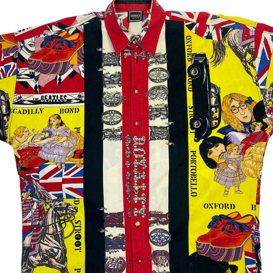 Vintage Super Rare 90s Red Versace Beatles Sex Pistols Button Down Shirt XL