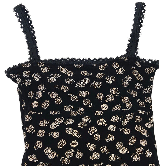 Vintage 90s Brown Pink Floral Lace Slip Dress 8 10 S