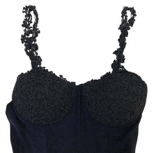 Vintage 90s Black Ribbed Lace Skater Party Dress 6 XS