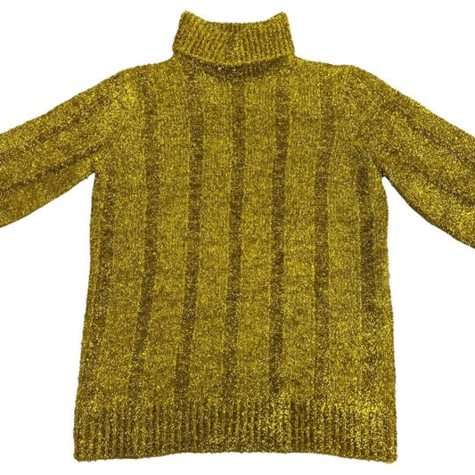 VTG 80s 90s Gold Glitter Roll Neck Disco Tinsel oversize Jumper 14 16 18 20 22