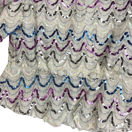 Vintage 80s White Sequin Puff Sleeve Embellished Party Blouse 12 14 M