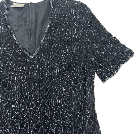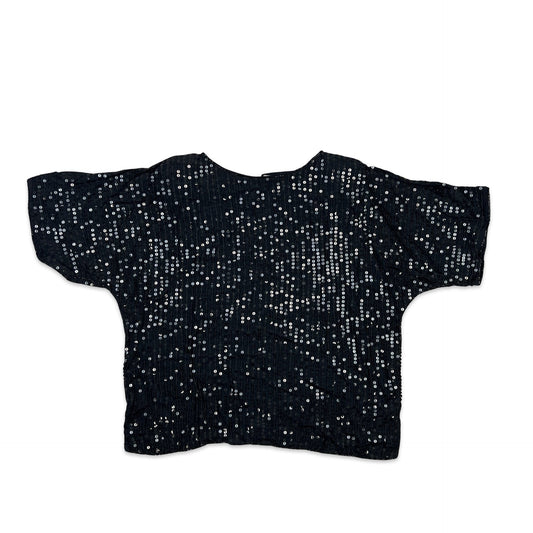 Vintage 80s Boxy Oversized Sequin Blouse Black 12 14