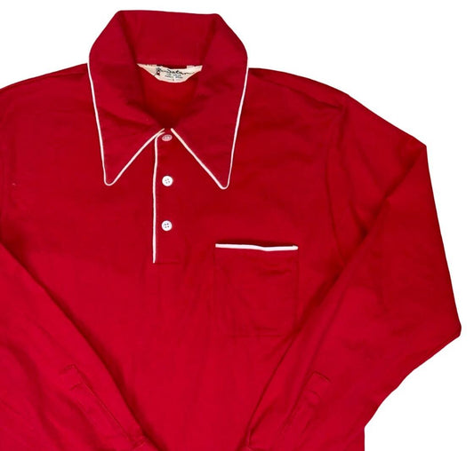 VTG 70s 'BLACK SATAN' TOP VALUE RED DAGGER COLLAR POLO SHIRT SMALL