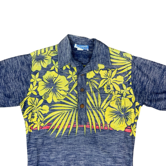 VTG 90S OCEAN PACIFIC SUNWEAR SURF REVERSE PRINT HAWAIIAN SMOCK POLO SHIRT SMALL