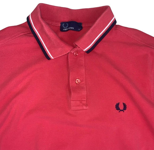 FRED PERRY RED POLO NECK SHIRT MEDIUM