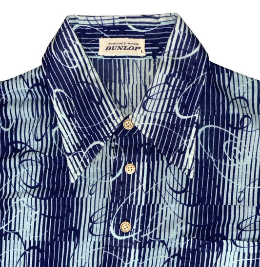 VTG 70s 'DUNLOP' BLUE SWIRL PATTERNED DAGGER COLLAR POLO SHIRT SMALL