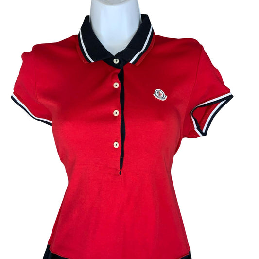 VTG 90s 'MONCLER' RED NAVY BLUE POLO COLLAR DESIGNER TENNIS SHIRT DRESS UK10