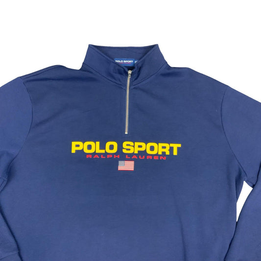 Vintage Polo Sport Ralph Lauren Navy Spell-Out 1/4 Zip Sweatshirt Pull Over 3XL