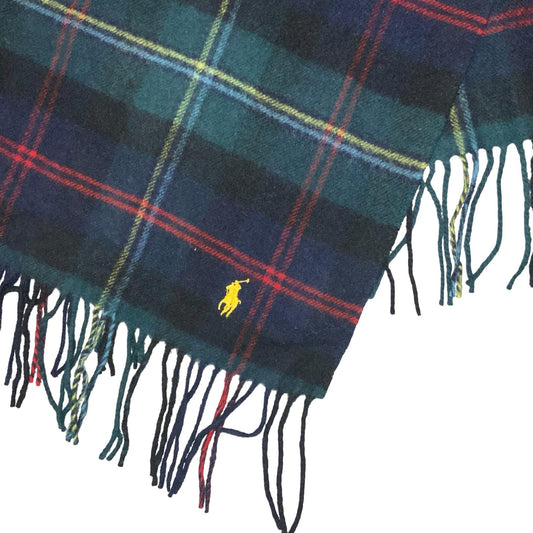90s 'Polo Ralph Lauren' 100% Wool Blue Green Plaid Wide Warm Winter Scarf