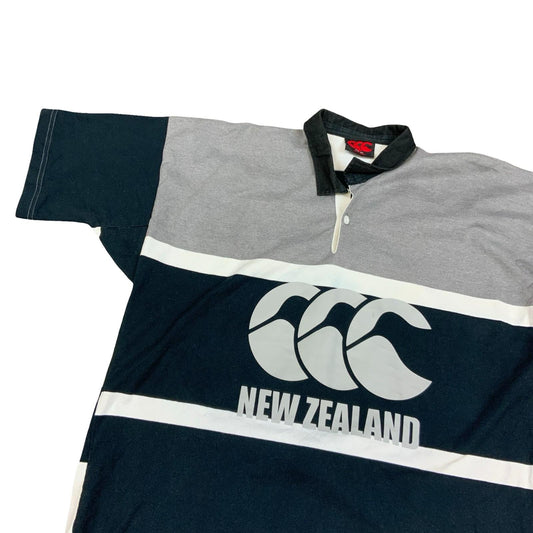 Canterbury Of New Zealand Grey White Black Button-Up Heavyweight Polo T-Shirt XL