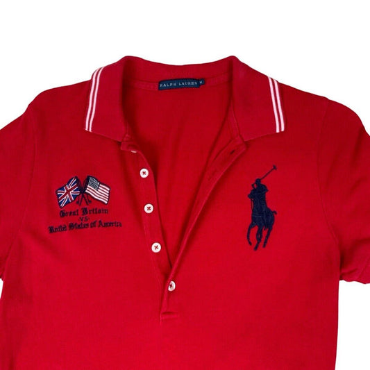 RALPH LAUREN RED EMBROIDERED COLLARED POLO DRESS SIZE S 8 10