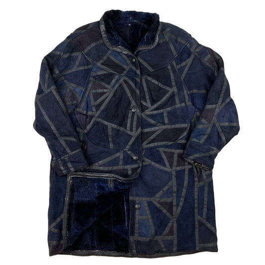 Vintage Blue Geometric Patch Work Shearling Jacket M L XL