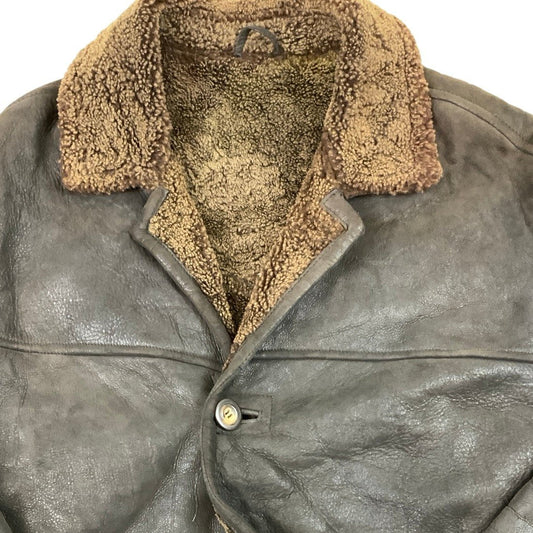Vintage Brown Leather Shearling Coat L XL