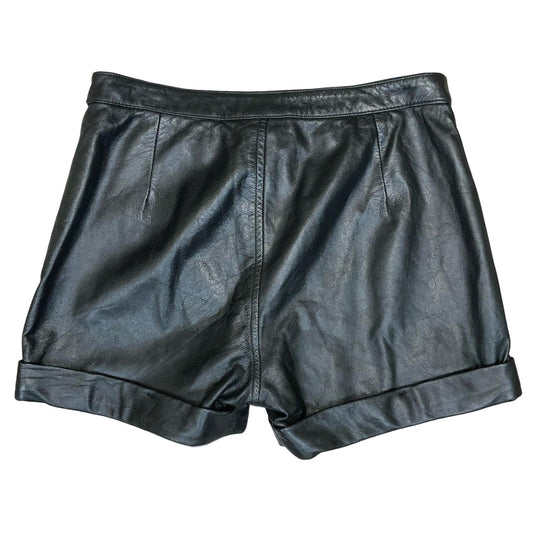 Vtg 90s 'Steve Madden' Black Leather High-Waisted Hot Pants Shorts UK 10/12