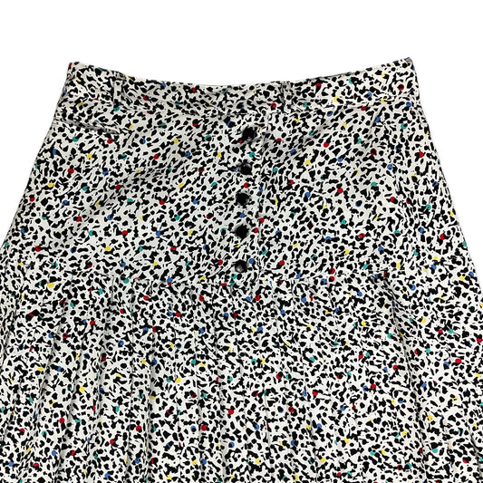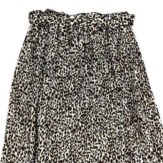 Vintage White & Brown Animal Print Pleated Midi Skirt