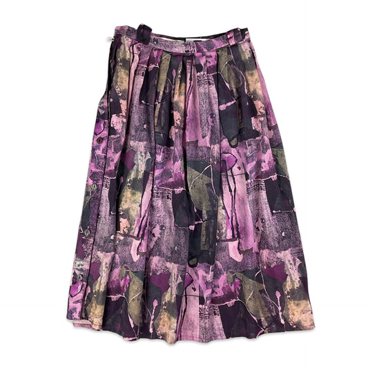 Vintage Purple Abstract Print Pleated Midi Skirt
