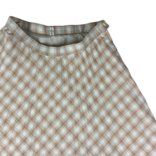 Vintage Beige & Peach Checked Pleated Midi Skirt 10