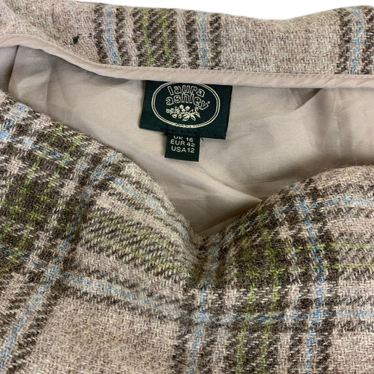 Y2K Laura Ashley Beige Tartan Wool Kilt Maxi Skirt M 16