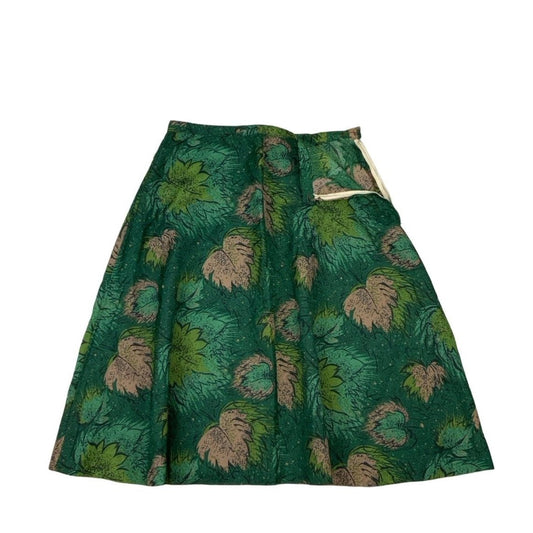 Vintage 60s 70s Green Botanical Midi Skirt S 6 8