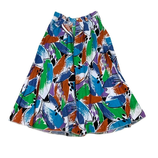 Vintage 60s 70s Abstract Green Purple Blue Midi Skirt XS 4 6