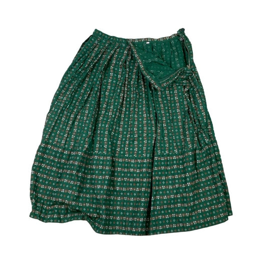 Vintage 60s 70s Green Red Floral Pleated Midi Skirt XS 4 6