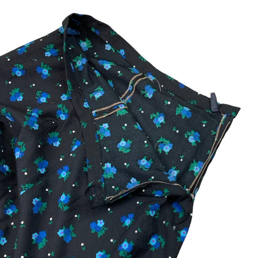 Vintage Blue Ditsy Floral Pleated Midi Skirt 14 16