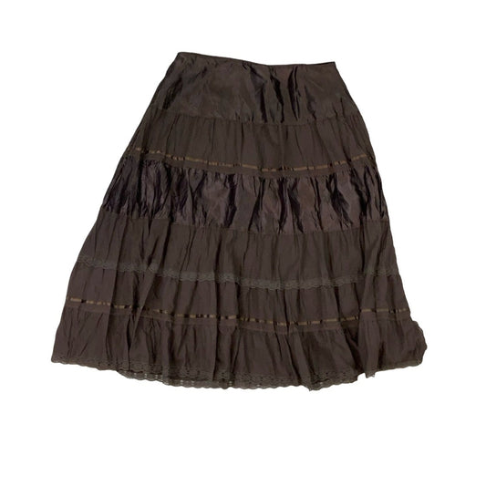 Vintage Y2K ‘CANDA’ Brown Tiered Patchwork Boho Midi Skirt 16 18