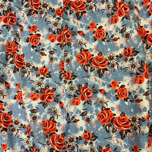 Vintage 60s 70s Floral Blue Red White Midi Skirt S 6 8