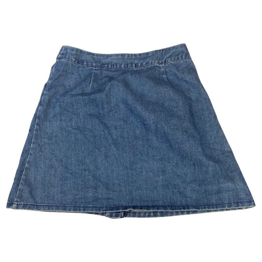 Vintage 90s 00s Blue Embroidered Button Floral A-Line Mini Skirt 8 10 S