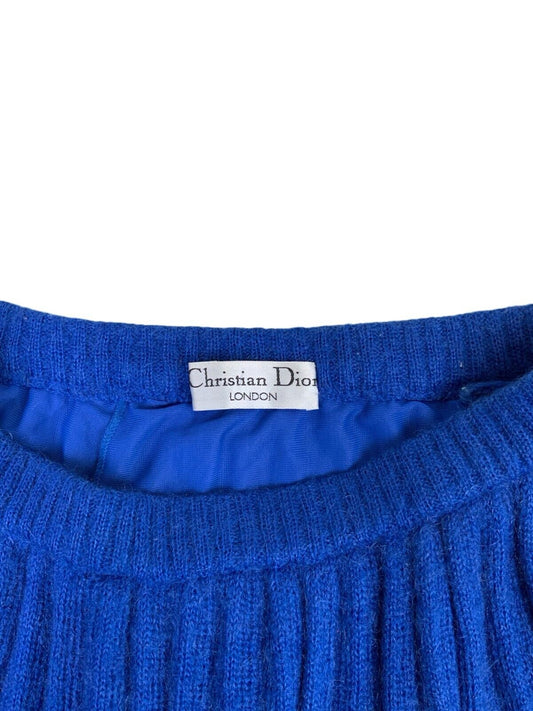 VTG LINED CHRISTIAN DIOR BLUE WOOLLEN PLEATED SKIRT SIZE S/M