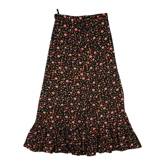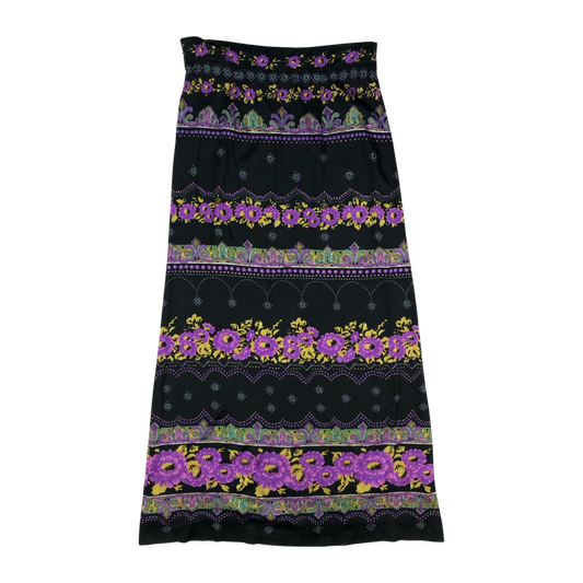 Vintage 60s 70s Black Floral Long Maxi Skirt 10
