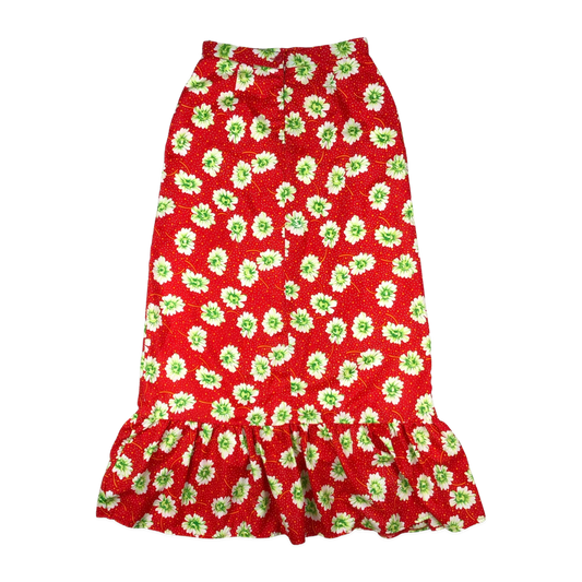 Vintage Red Paisley Bird Peacock Print Skirt 10