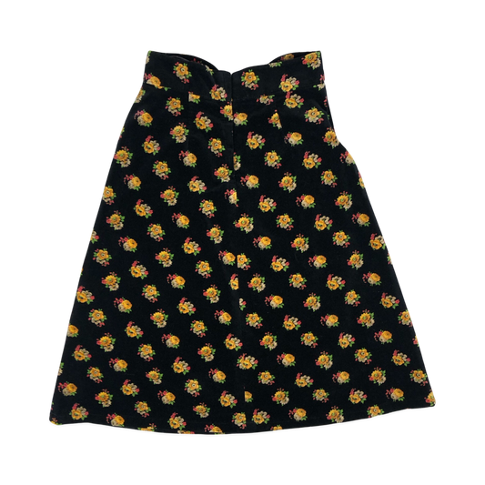 Vintage Black and Yellow Floral Velvet Velour Skirt 6