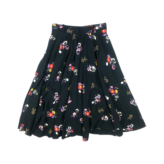 Vintage 70s 80s Black Floral Print Gathered Skirt 8