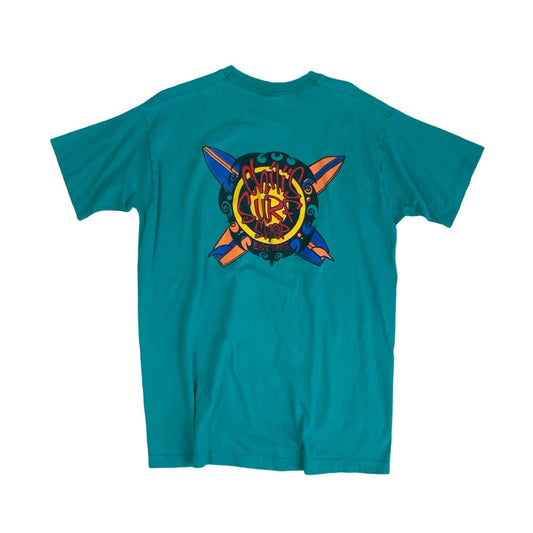 Vintage 90s 'Fruit of the Loom' Green Surf Graphic Short Sleeved Single Stitch T-Shirt M L