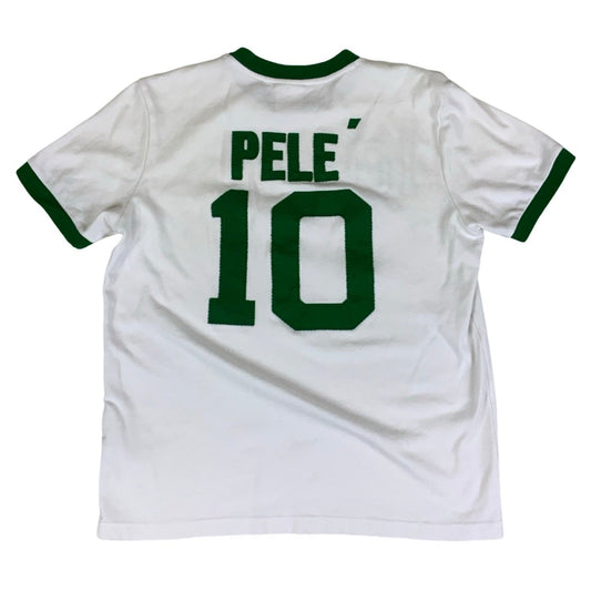 Vintage Reissue RARE Pele White Ringer Football T-shirt M L