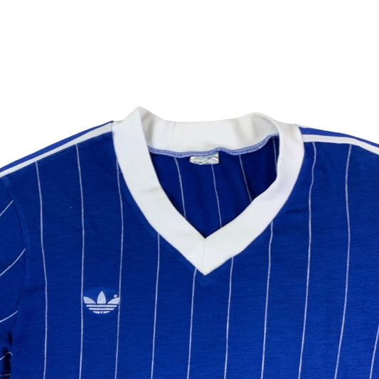 Vintage 90s Adidas Blue White Stripe Single Stitch Sports Tee S M