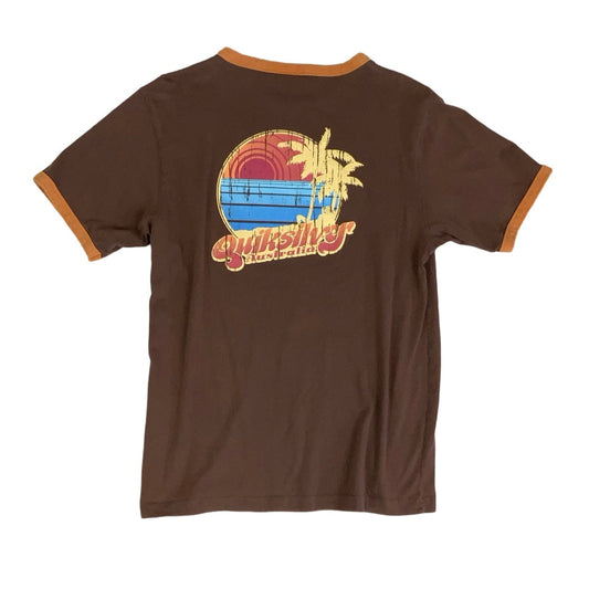 Vintage 90s 'Quicksilver' Australia Brown Graphic Short Sleeved Surf Baby Tee T-Shirt S M